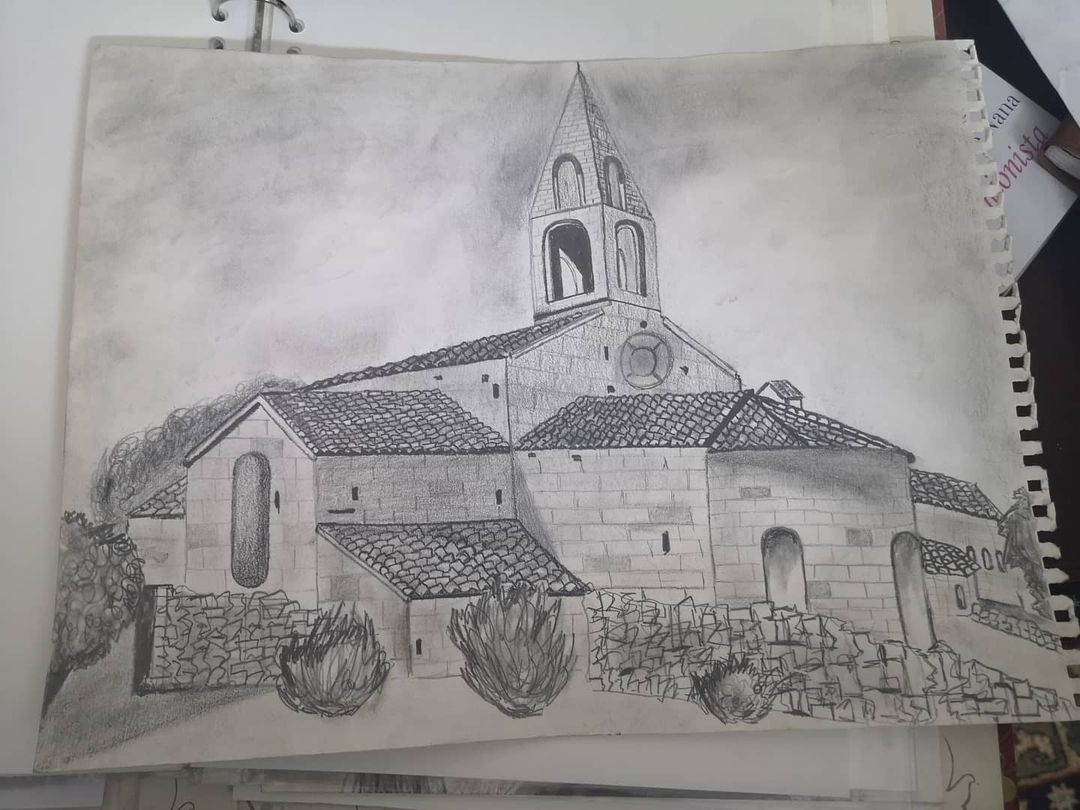 Croquis sur feuille de dessin | Dessin de l'abbaye du Thoronet dans le cœur du Var Sud de France